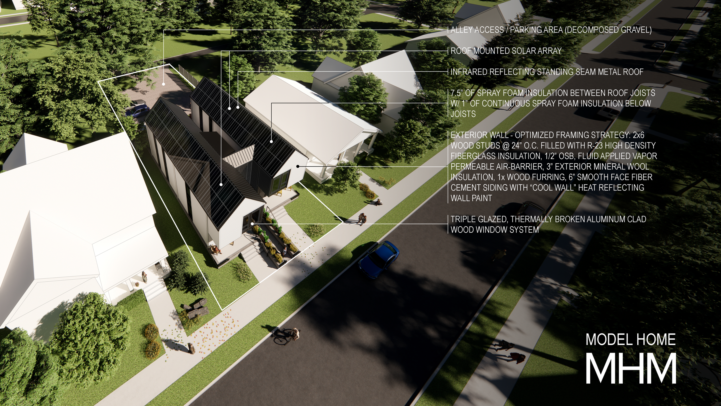 Model Home operates at the intersection of housing policy, shifting demographics, and environmental urgency. It aligns with Knoxville’s emerging zoning reforms and Missing Middle Housing efforts, responding to rising costs, low inventory, and the needs of millennials, baby boomers, and single-person households who seek smaller, well-located homes near the urban core. Through collaboration with City of Knoxville Planning, local agencies, and academic partners, the project tests how this prototype can navigate existing and proposed codes, neighborhood context, and site conditions to move from concept to buildable standard.