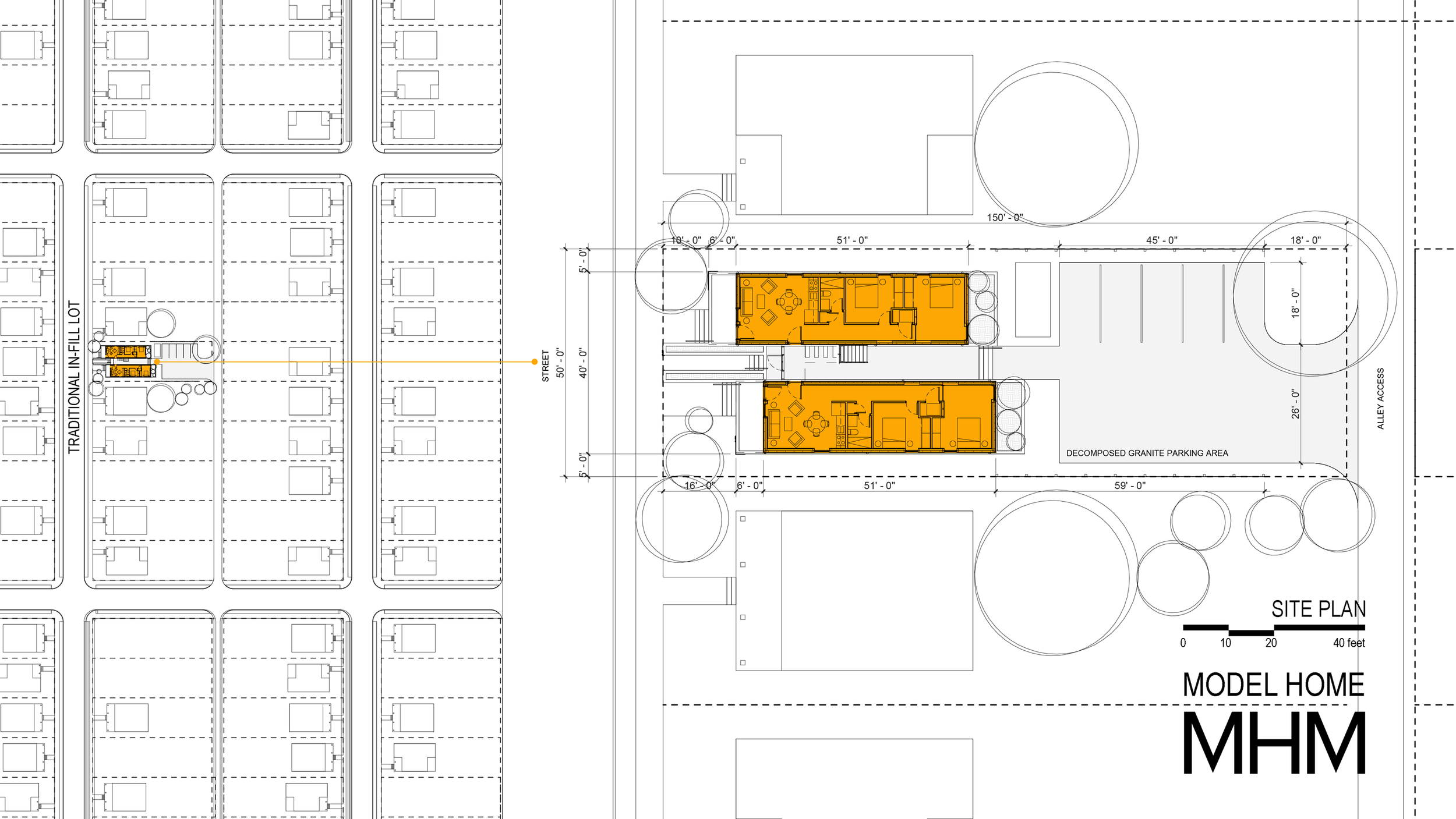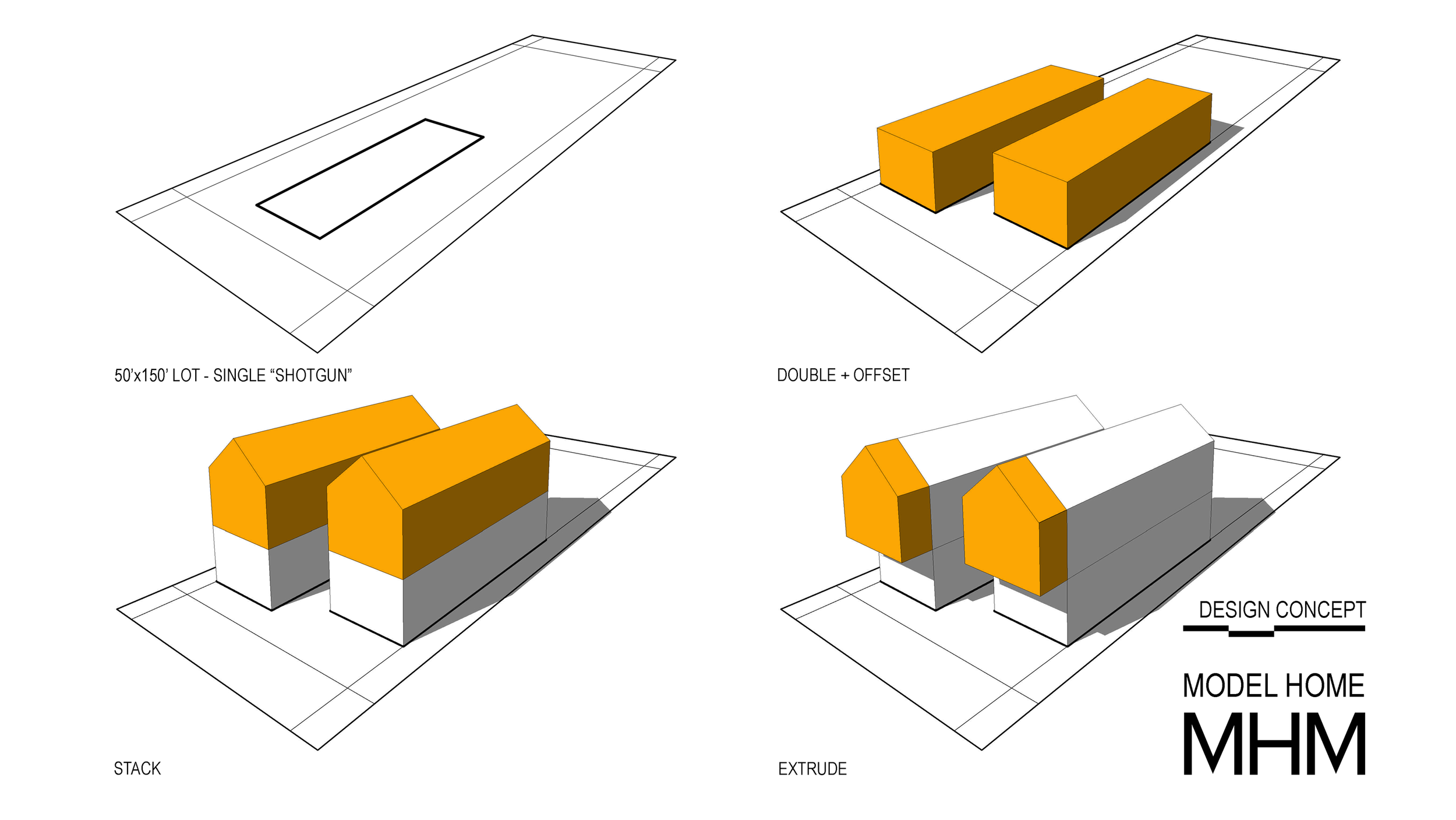 Model Home is an architectural research project that tests a replicable “missing middle” infill prototype for Knoxville’s historic urban neighborhoods. Working within a standard 50’ x 150’ lot, the project reframes the traditional Southern “shotgun” house as a compact, contemporary, multi-unit model that is both contextually sensitive and climate responsive.